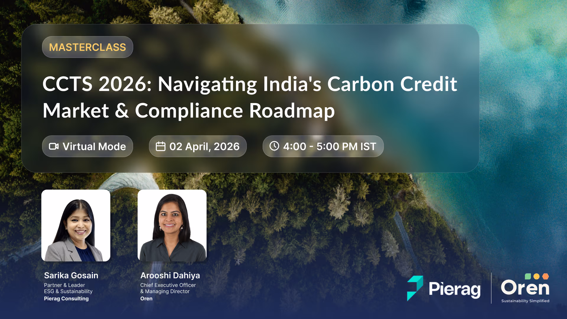 This masterclass, jointly hosted by Oren and Pierag, provides a practical and regulatory-focused walkthrough of how India's Carbon Credit Trading Scheme works, what recent policy updates mean for industry, and how organisations can prepare for participation.